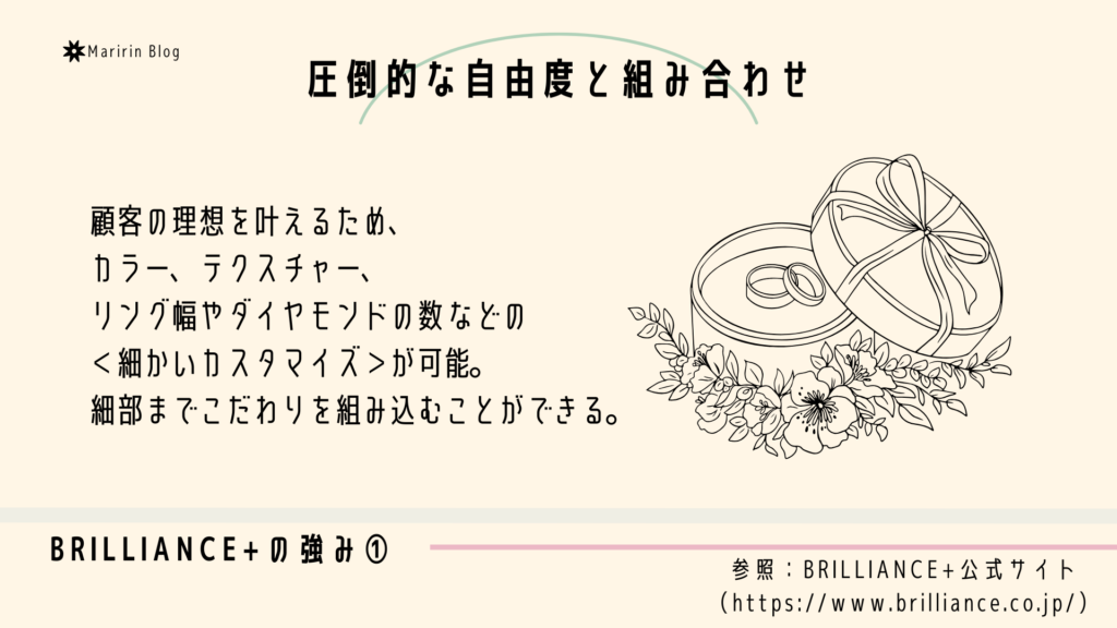 また、数多くあるブライダルジュエリーの中で、BRILLIANCE+(ブリリアンスプラス)の特徴と強みは下記になります。