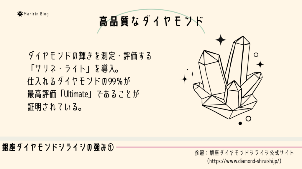 しかし、ダイヤモンドシライシは高品質なダイヤモンドを手頃な価格で提供し、