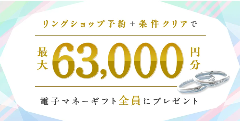 予約手順でも軽く触れましたが、ブライダル予約専門サイト「ハナユメ」経由で予約すると今なら63,000円分の電子マネーギフトがもらえます。